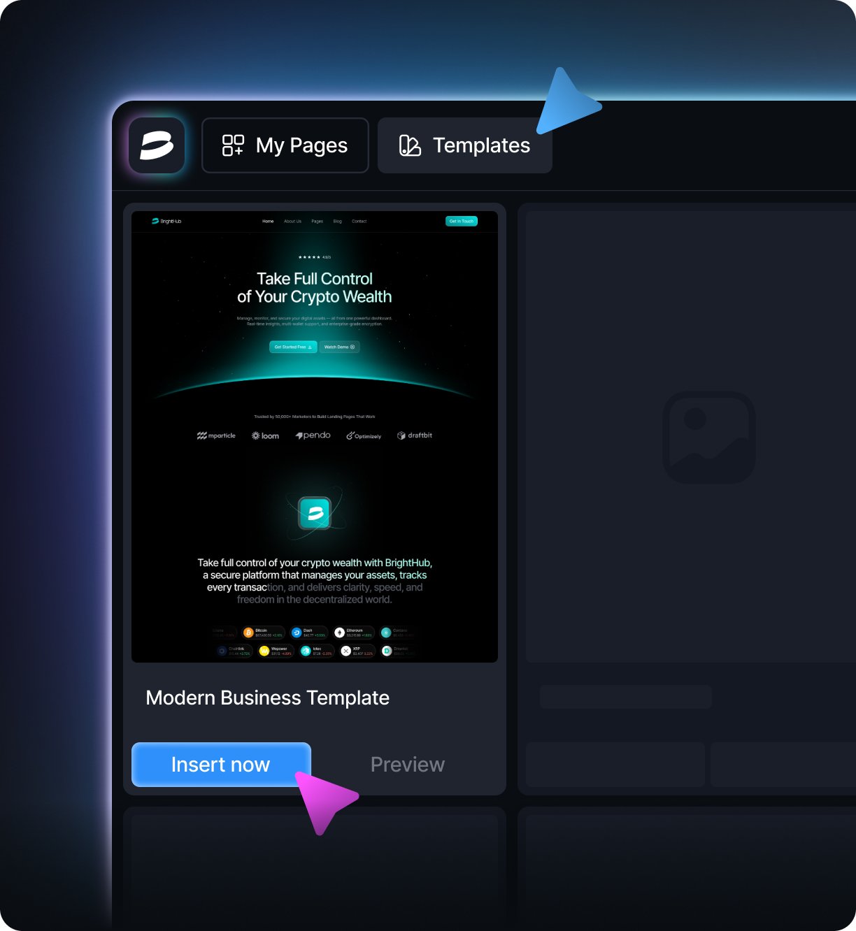Choose from 100+ stunning, high-converting templates tailored for e-commerce, SaaS, agencies, and more. Just select, customize, and launch.